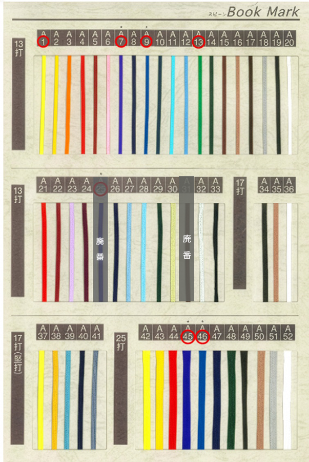 スピン(しおり)色見本 [アサヒクロース見本帳より]